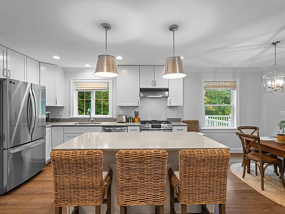 Nantucket style home located on Masons Island proper in move-in condition. Situated on a newer street with seasonal views looking towards the Mystic Harbor. An open floor plan on the main level allows for large spaces to entertain, including a deck off of the living room, as well as an open den and dining room. A first floor full bathroom allows the opportunity to convert the den into a first floor bedroom if needed. The second level has four bedrooms and two full baths, including a primary suite with ensuite bath and laundry. The full walk up attic is perfect for storage and has the potential to be finished off as additional living space. Likewise, a full walk out basement, yet to be finished, has the possibility for a recreation area or additional living space. New mechanics and finishes throughout provide care free living, in addition to the attached two car garage. The open yard is ideal for gardening and outdoor activities. Situated between downtown Mystic and Stonington Borough, the property allows for privacy and convenience. Access to the water, boating, tennis, and picnics by the sea are all part of the Masons Island community lifestyle. Ownership allows for an application to the Masons Island Yacht Club, but membership is not guaranteed.