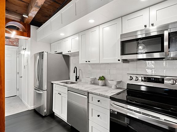 A Brick & Beam open-concept downtown condo with a new, never-been-used kitchen and high ceilings overlooking downtown Newburyport & the waterfront in a mixed-use building. A remodeled first floor with white cabinets, quartz, and new appliances, and two bedrooms and a large bath on the 2nd floor, with a finished sunny loft on the 3rd floor (not included in SFLA) with a skylight, would be an ideal office space. If you want to open your door and grab your coffee & bagel, sit in an Adirondack chair watching the boats go by, walk the rail trail, have lunch at one of the dozens of options, and have dinner at one of the many fabulous waterfront restaurants, this is the dream! You have boutique shopping, art shops, coffee cafes, waterfront concerts, and farmer's market all around the block. There is no need for your car when you have everything at your doorstep, however it comes with a prime parking space. This is an opportunity that rarely becomes available. No short-term rentals allowed.