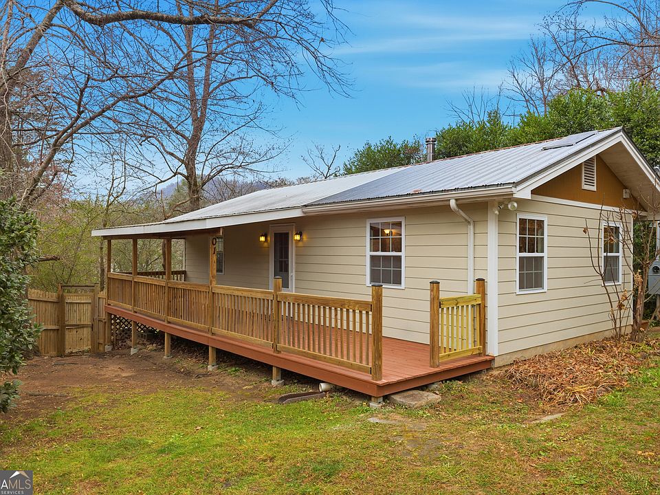 Completely renovated 2/1 cabin in Mountain City perfect for investment, starter home or vacation home in North Georgia. Built with meticulous detail to energy efficiency via a mini split system for cooling/heating as well as a wood stove. You'll love the combination of simplicity and elegance with hardiplank siding, metal roof & bamboo hardwood floors. Plenty of flat yard to include a fenced garden area. Across the street from the Mountain City Playhouse you can live 'in town' close to Foxfire & Blackrock Mountain State Park, but feel like you're tucked away in the foothills of the Blue Ridge Mountains. Yard is fenced and privacy screened creating a secret garden vibe.