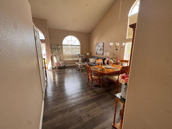 This spacious residence boasts 1,974 square feet of comfortable living space, featuring 3 bedrooms w/ loft and three full bathrooms. This unique model has 1 bedroom and a full bathroom downstairs with its own privacy door. The heart of the home, the kitchen, is part of a delightful kitchen/family room combo, perfect for family gatherings and casual meals. For more formal occasions, take advantage of the elegant formal dining room. The home also includes a cozy fireplace, ideal for relaxing evenings. Practical amenities include a conveniently located laundry area and a three-car garage providing ample storage space. The flooring throughout adds to the home's welcoming atmosphere. This home sits on a generously sized lot of 6,876 square that has a permitted curbed sided access for RV/Boat access.