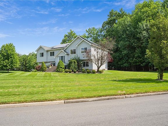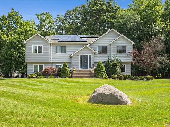 Move right in to this fabulous Raised Ranch home! Located on a beautifully manicured corner lot, on a cul-de-sac. Featuring hard wood floors, Formal Dining room, Large white bright Eat-In-kitchen with remote control sky light and rain sensor, slider access to large deck overlooking park like level backyard, New Roof, Solar panels, windows, freshly painted, Living room with Vaulted ceilings, crown molding, Wood railing, Upstairs has the Master bedroom, two nice size bedrooms and two full bath rooms, Lower level features Family room with slider to backyard patio, additional large bedroom, full bath and laundry room. Oversized two car garage with new garage doors, openers and remotes. Come preview this Home today!