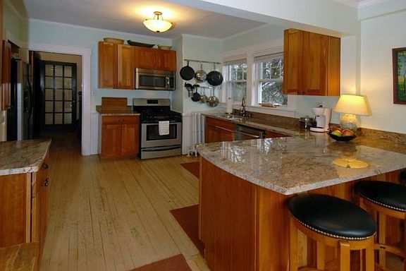 Price JUST Reduced! Motivated to sell before Winter.Immaculately maintained 3 bedroom home with hardwood floors throughout. Walking into the kitchen, you will suddenly feel an urge to entertain, utilizing your formal dining room with beautiful built in china cabinets and a butlers pantry you could only dream of. Travel on to the cozy living room, designed around an expansive field stone fireplace. The elements that will be surely noticed are the pressed tin ceilings in living and dining rooms, the kitchen intended to be cooked in with granite countertops, and a 3 season porch complete with sleeping area for warm summer nights. This becomes home when you consider the detached 1 car garage, the paved driveway, and ideal sized lawn for play. Too many upgrades to announce, this truly is everything you will want or need.