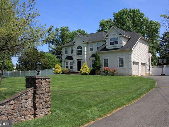 OPEN HOUSE HAS BEEN CANCELED! This house is Gorgeous! Nestled in Mount Laurel, this home offers everything you could desire. Step into a two-story foyer with hardwood floors and an open staircase. The first floor boasts a stunning living room and formal dining room; both filled with natural light from numerous windows. The spacious family room features a wood-burning fireplace and flows into an open eat-in kitchen equipped with Kitchen Aid stainless steel appliances, custom 42" maple cabinets, beautiful granite countertops giving you plenty of counter space and offering a large kitchen island. Just off the kitchen, a stylish butler’s pantry offers added prep space and extra storage for effortless entertaining. Upstairs, you'll find four bedrooms, including a master suite with a large sitting room, private bath, and his-and-hers California closets. The finished basement provides a generous living area, a powder room, separate BONUS room, being used as a bedroom now, and plenty of storage space. The basement has the potential of being turned into an in-law suite if needed. Step outside to your own backyard paradise! The EP Henry patio spans two levels, complete with custom stone light fixtures and walls for extra seating. The BBQ area has its own gas line for year-round outdoor cooking. This entertainer's dream includes a spectacular HEATED SWIMMING POOL and SPA with a custom WATERFALL made of large boulders, surrounded by a natural flower garden. There's even a designated area for a vegetable garden and a hammock to relax by the soothing sounds of the waterfall. The spacious shed is tucked away in the wood area offering ample storage for lawn care, pool equipment, and much more. Set on nearly an acre and surrounded by mature trees for ultimate privacy, you're going to love this house. The Roof is New, installed just last year. Call today for a private showing and make this your Home!