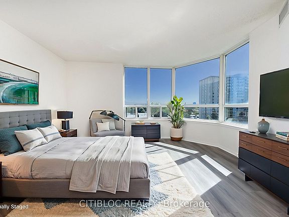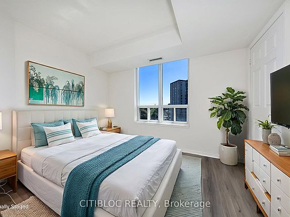 Spacious Renovated 2-Bed, 2-Bath Condo With Southwest Exposure! Fully renovated unit featuring new LVP flooring, new stainless steel appliances, and fresh paint (2025). Large primary bedroom with walk-in closet and 4-piece ensuite. Prime location within walking distance to transit, shopping, and top schools (Westminster P.S., Louis-Honoré Fréchette P.S., Thornhill S.S.). Amenities include 24-hr security with gatehouse, gym, party room, games room, and welcoming foyer. Steps to Centrepoint Mall and Finch Station. Perfect starter home for a young family!