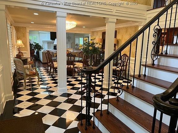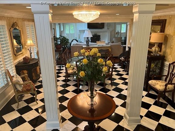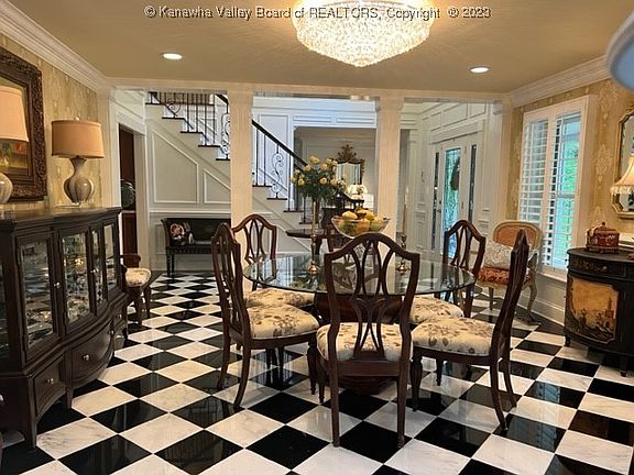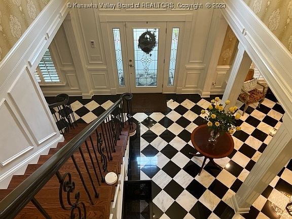Elegant Elkview 2-story brick home is beautiful inside and outside! You'll love the heated tile flooring and hardwood throughout the home. A stunning stairwell and foyer greets you at the front door. The formal dining room is set off by a gorgeous chandelier. The spacious family room surrounds a gas logs fireplace. The kitchen is unforgettable. The center island has a granite countertop, and both sides of the kitchen have quartz countertops. All appliances are high performance stainless steel, including the gas range and trash compactor. The main level owner's suite includes 2 walk-in closets, double vanity, jetted tub, and double shower. The second floor owner's suite has a double vanity and jetted tub. The exterior boasts a covered porch, screened-in back porch, deck, outdoor bar, hot tub and 2-car detached garage.