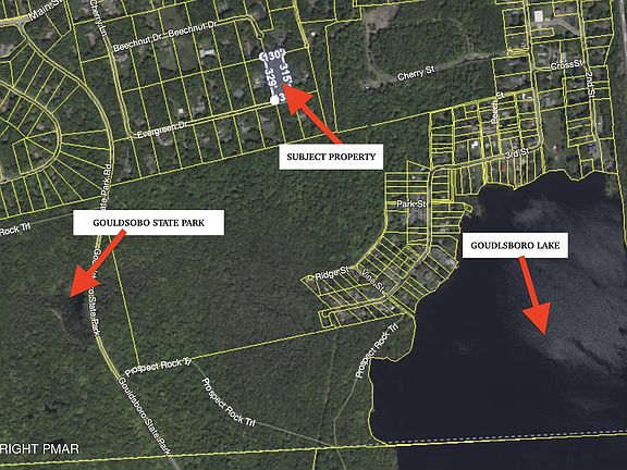 1 Acre FLAT Wooded lot In Gouldsboro! LOT is located only 2 minutes off I-380 & steps away from Gouldsboro State park & State Land-- 7,000 Acres of State Land down the road ideal for Hunting, Fishing/ Ice Finishing right on Gouldsboro Lake! The location is great for all 4 seasons! Skiing & Hiking writing 10-30 Minutes away & Only 2 Hours From NY/NJ. Lot is on a quiet Cul-De-Sac & has access to public water if needed (no need for a well) -Septic Needed. Come Scope out this great location and make it yours! Homes on the Road Range from 300-500K plus, come build yours and be part of nature yet still close to everything! Ask for Builder Recommendations for affordable building!
