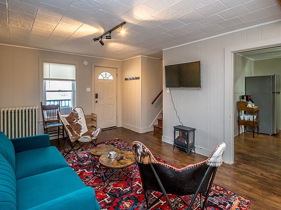High-end freshly renovated 3-bedroom, 1-bath two-level unit in the heart of the White Mountains at 1 Exchange St, Gorham, NH. - Fully furnished and impeccably decorated by a designer, offering a luxurious and comfortable living experience. - Features beautiful hardwood floors and ceiling fans for added comfort throughout the unit. - All appliances are included: TV in the living room, washer, stainless steel stove/oven, stainless steel fridge, coffee maker, and microwave - all brand new. - Kitchen is fully equipped with utensils, dishes, mugs, and pans for your convenience. - Bedrooms are ready for immediate occupancy with bedsheets and pillows provided. - Rent is $1750/month, and all utilities are included: water, heat, trash removal, lawn care, and snow removal. - Tenant is responsible for electric, ensuring you have control over your energy usage. - Enjoy the privacy of a private patio, perfect for relaxation and outdoor entertainment. - The unit is situated on the third floor, provi