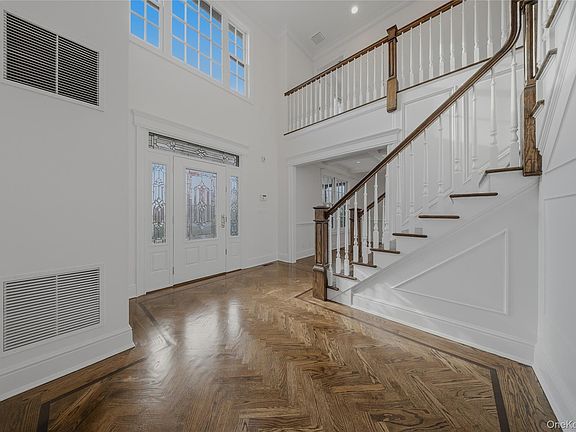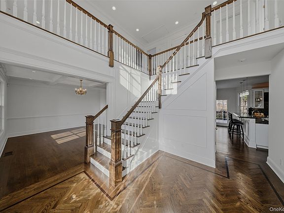 Welcome to a beautifully crafted and thoughtfully renovated home that offers exceptional comfort, style, and versatility. From the moment you arrive, the charming front porch sets the tone, an ideal spot to unwind and enjoy the surrounding neighborhood. Step inside to discover gorgeous millwork, gleaming hardwood floors throughout, soaring ceilings, and an abundance of space designed for both everyday living and memorable entertaining. The main level features an open concept flow with a formal dining room, spacious kitchen, breakfast nook, family room, and living room. From the breakfast nook, sliding doors lead to a newly renovated deck that overlooks the lush, landscaped grounds perfect for outdoor dining and relaxing. The main home area offers 4 bedrooms, 3 full bathrooms, and a powder room, including a generous primary suite with an en-suite bathroom and a large walk-in closet. One of the standout features is the three car garage, which includes a staircase adjacent to the mudroom leading to an additional upstairs suite ideal as an in-law setup, nanny/au pair suite, guest quarters, or private home office. This suite showcases brand new hardwood floors and a flexible layout to meet a variety of needs.