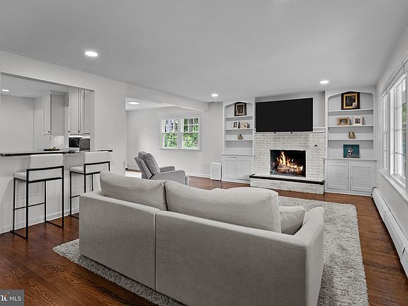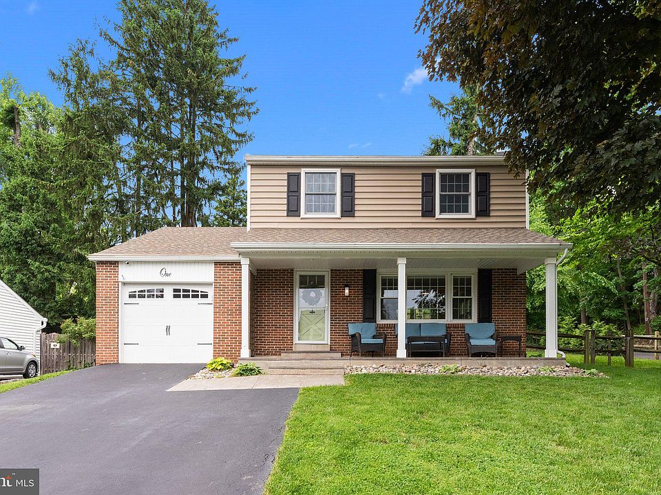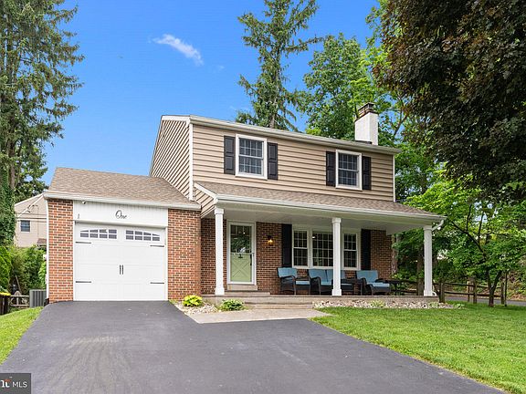 Rare opportunity in Newtown Boro for this single family home with almost everything redone for you! This home is tucked away on a quiet cul-de-sac street yet very close to the center of town. When you arrive, you'll notice a double wide driveway leading to a brick front colonial with generous 25' x 8' stamped concrete, covered front porch with recessed lighting (2019). A brand new (2024) full view storm door with built-in pull down screen leads to the living room where you'll notice how light and bright this home is. Hardwood floors run throughout the first and second floors. The living room features a large triple window, recessed lighting and a brick fireplace flanked by bookcases. The fireplace is being sold as decorative, non-working. The sellers know of no issues but do not use it. The dining room has two sets of double hung windows and features a pass through to the gorgeous remodeled kitchen. The kitchen has white shaker cabinets, granite countertops, tile backsplash, pantry cabinet, recessed lighting, under cabinet lighting, lighted display cabinets, farmhouse style sink, stainless steel Kitchen Aid appliances including a 5 burner slide in stove and French door refrigerator plus a breakfast bar open to the living room. The large laundry room has a built-in storage bench/coat rack, storage cabinets, convenient powder room, door to the backyard plus entry to the garage which has room for storage plus pull down stairs to the floored attic. The stairs to the second floor are stained wood to match the flooring, with white risers. Upstairs you'll find a sliding barn door to the full bath featuring a comfort height double vanity and glass enclosed (glass just replaced 5/2024), fully tiled shower plus a second sliding barn door to access the main bedroom. Two more big bedrooms complete the second floor. Out back is a fully fenced yard (fence replaced in 2015) featuring a huge 39' x 27' stamped concrete, two level patio (installed in 2015). A retaining wall is accented with custom lighting and there's a 220 line already installed for a hot tub. Replacement windows throughout, newer top/down, bottom/up blinds, updated electric panel, Hahn whole house water filtration system, newer Trane XR central air (2018), siding (2016), repaved driveway (2017), roof (2015). With nothing left for you to do, enjoy the front and back patios, convenient shopping, boutiques and social life of downtown Newtown Boro.