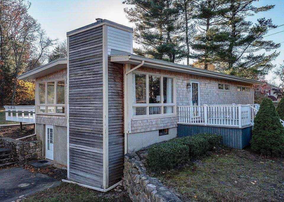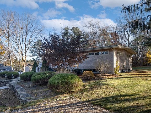 Welcome to midcentury Mattapoisett c. 1960! Situated off of bucolic Acushnet Rd, one mile from downtown Mattapoisett village, this much-admired ranch-style home is situated on a large (nearly ¾ acre) attractive lot w/ frontage on two streets – Field St and Meadow Lane. The large yard, and the fact that this property is on town sewer and water, offers its next owner all kinds of possibilities. While a new owner might look to make some updates, this home’s main living space has walls of windows, is bathed in sunlight throughout the day, and has a classic 1960 floorplan with an open concept vaulted living room (w/ wood burning fireplace) open to a dining area and kitchen, along with 4 bedrooms and one full bath. Head downstairs to a finished basement with bar, large family room and another fireplace w/ a half bath and walkout entrance. The basement also offers plenty of unfinished space for utilities and storage. Please note: furniture and some wall colors have been virtually staged.