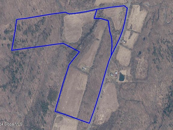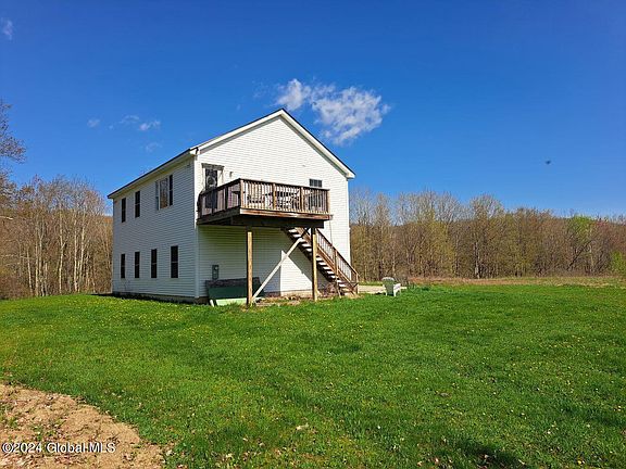 A spectacular 51 acre parcel of land boasting of beautiful mountain views, a patchwork of fields, extensive road frontage, a small stream, and lovely wooded land. A long driveway leads to a very privately situated 2 bedroom residence situated above an oversized 3 bay garage. Designed for potential farm productivity, the garage features 10 ft. overhead doors, heat, and a wash station. The comfortable residence above offers an open floor plan, a nicely equipped kitchen, 2 bedrooms, 1.5 baths, and a an elevated deck from which to enjoy the views. The property boasts of other potential building sites and is comprised of 2 tax map parcels. This versatile property would make a fantastic second home with lots of room for all your outdoor toys or develop further into your own homestead.
