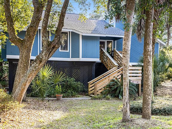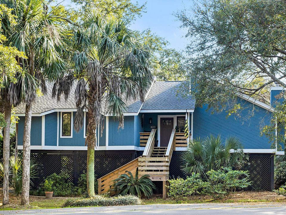 Currently the least expensive single family detached home for sale in all of Wild Dunes. This home is situated on a large corner lot (.31 Acre) and is only two blocks away from dipping your toes in the Atlantic Ocean! Easy beach access and easy walkability to Wild Dunes amenities! The home is nestled among numerous live oaks, multiple palms, ornamental grasses and yet has plenty of room to expand its footprint. A charming front porch greets you with new stairs and railings and craftsman style front door. On the interior, the space is comfortable and lives larger with a wood paneled cathedral ceiling in the living room, along with stone fireplace and bench window seating. Sit on your screened porch overlooking your large yard and enjoy the sound of the ocean. There is ample parking space for two cars, small boat, golf cart beneath the home, plus room for multiple cars in the driveway. This is a great location and value! Offered furnished.