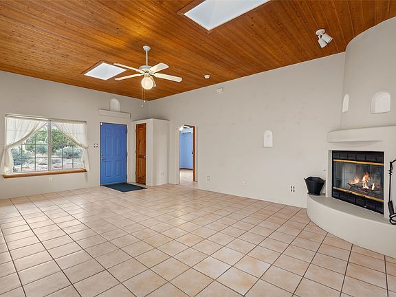 This light-filled, single-level 3-bedroom, 2-bath home sits on a prime 1.47-acre lot just blocks from The Agora in Eldorado. With no interior steps and an easy, flowing layout, the home is both accessible and inviting. The living room welcomes you with tongue-and-groove ceilings and a cozy wood-burning fireplace. Skylights throughout add warmth and natural light. The kitchen is well-appointed with a Bosch stove, new microwave, and new Miele dishwasher. Radiant tile floors provide gentle warmth underfoot, while ductless mini-splits offer efficient cooling in the summer. Step outside to a private, enclosed courtyard with mountain views—a perfect space for gardening, entertaining, or simply relaxing. Additional features include a finished two-car garage and water softener, plus a dedicated laundry room conveniently located off the kitchen. Residents of Eldorado enjoy a vibrant community with amenities for all lifestyles: a clubhouse, swimming pool, playground, tennis, basketball and pickleball courts, dog park, scenic walking trails, and even horse stables