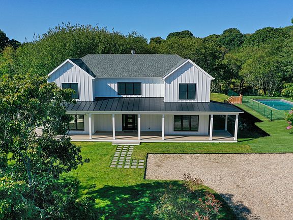 Due for completion in Spring 2025, this stunning new construction in Montauk is set on a sprawling, park-like acre at the end of a quiet road, offering exceptional privacy and tranquility. This traditional-style residence spans over 3,300 square feet and features five spacious bedrooms, five full bathrooms, and one half bathroom. The first level boasts a double-height living room with a cozy fireplace and a powder room. A modern kitchen, equipped with premium Bosch appliances and wine fridge, features a center island that seamlessly opens to a generous dining area-ideal for entertaining. The main level also includes a luxurious primary suite with a fireplace, an oversized closet, and a spa-like private bath. Upstairs, you'll find four ensuite guest bedrooms, a convenient second-floor laundry room, and a light-filled landing that offers the perfect space for storage, a reading nook, or a home office. The home includes a full basement with 8-foot ceilings, offering the opportunity to finish for additional living space or use for ample storage. Additional features include 9-foot ceilings on the second floor, a central vacuum system, and a thoughtfully designed layout throughout. Outside, enjoy the serenity of freshly seeded grass, a heated saltwater pool, and a refreshing outdoor shower-perfect for summer relaxation. The expansive property also allows room for an accessory structure if desired, enhancing the flexibility and long-term potential of this exceptional offering.