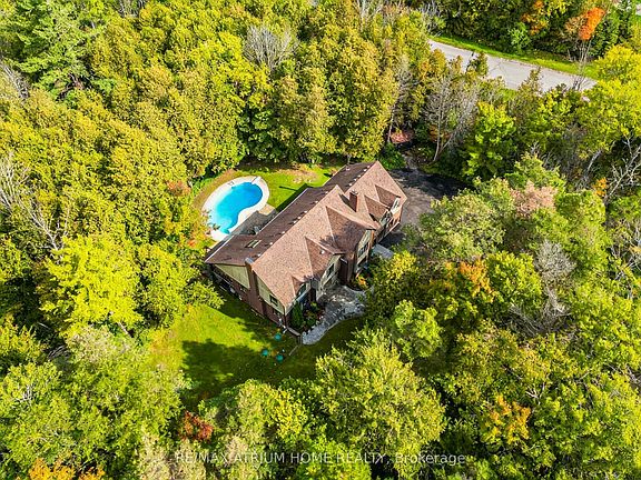 Stunning 1.47-acre private estate nestled on a quiet cul-de-sac in Stouffville, surrounded by mature trees. Offering over 5,000 sq.ft. of meticulously finished living space, seamlessly blends sleek contemporary design with comfort and functionality. The heart of the home is a chefs dream kitchen featuring double islands, top-of-the-line appliances, and potential space for a second cooktop or BBQ -- perfect for entertaining family and friends. The bright, open-concept layout connects the kitchen, living, and family areas, with custom built-ins and an artistic feature wall adding style. From the living room, step out to a roof-covered deck overlooking a beautifully treed backyard and in-ground pool, creating a private oasis for peace and relaxation. The second floor features five generously sized bedrooms, highlighted by a luxurious primary suite with a 6-piece spa-like bathroom, frameless glass shower, and an oversized skylight. Plus a spacious Great Room with a fireplace adds versatile space for gatherings, entertaining, a home office or a hobby studio. The fully finished walk-out basement offers flexible space for recreation, fitness, or media. Cozy electric fireplaces and potlights on both levels enhance the home with warmth and style. Additional features include a recently renovated 2.5-car garage with wall-mounted EV charger, driveway parking for 7+ vehicles, and a laundry room with direct access to both the garage and backyard. This estate perfectly combines modern elegance, practical living, and lifestyle comforts, offering a rare opportunity to own a truly exceptional home in a prestigious neighborhood.