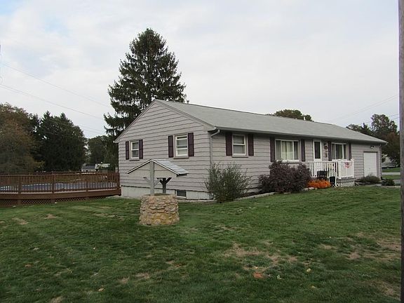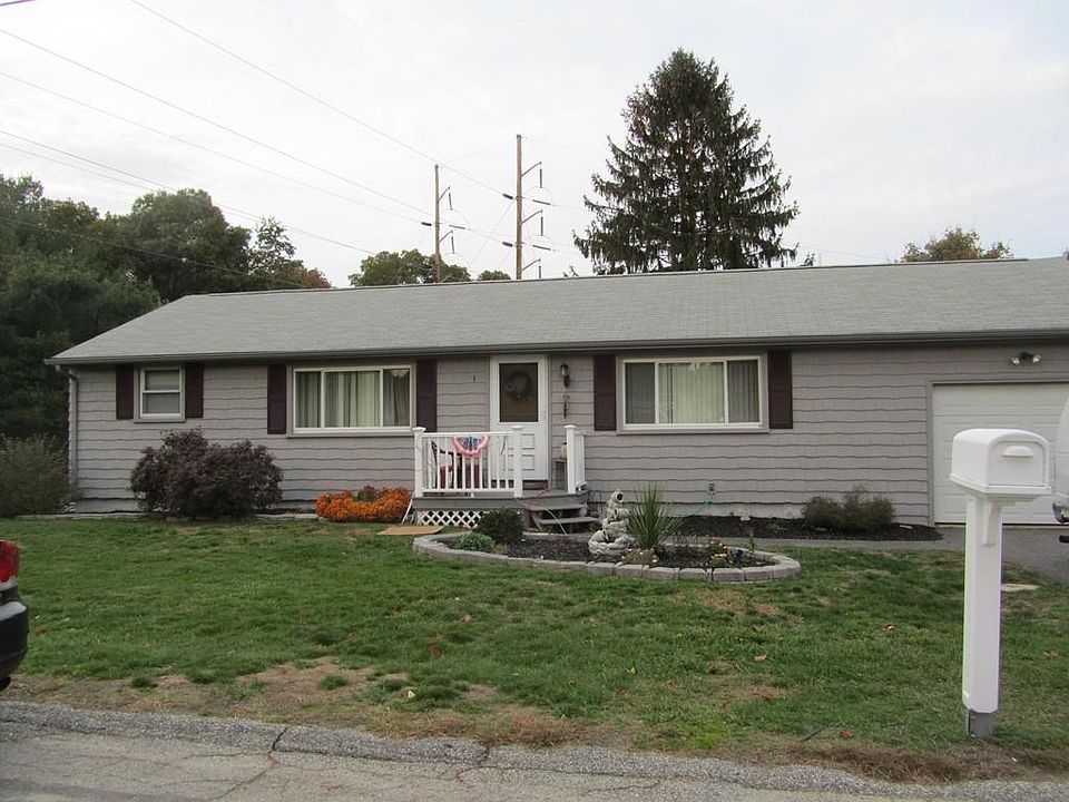 Remodeled, spacious ranch on almost 1/2 acre, corner lot in North Tiverton. Enjoy a rural feeling in a home that's close to everything. Large LR and FDR have new eng. hardwd. floors.. Kitchen has eat-in area, SS appliances, granite, tile floor, remodeled cabinetry/backsplash and breakfast bar. Full bathrm. on main level has tub/shower, tile floor & modern vanity. 3 Brs on main level as well as bonus rooms on both levels. Laundry area in basemt. Newer cedar impressions vinyl siding. Newer septic system. Large wood deck that wraps around AG pool offers lots of room for family fun all year round. All appliances and pool equipment will convey with home.