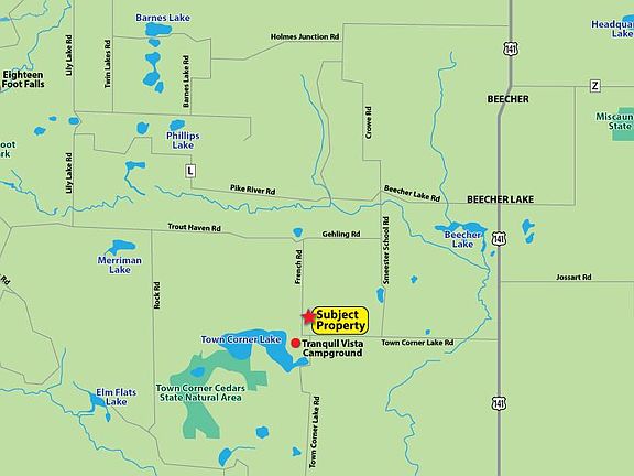 Escape to your own Northern Wisconsin paradise! This guaranteed buildable nearly 3 acre wooded lot near Amberg, WI, is the ultimate outdoor enthusiast's dream. Featuring level terrain and electric available at the road, you can easily set up your camper, cabin, or full-time home right away. Enjoy direct access to Marinette County ATV and snowmobile trails and find total seclusion while being moments from adventure. You're surrounded by thousands of acres of public forest for hunting and hiking. A short walk lands you at Town Corner Lake, and you're a quick drive to premier fishing and boating on High Falls Flowage and Lake Noquebay. Don't just buy land-buy a year-round recreational retreat! Prime Northwoods real estate this close to the action won't last. Currently additional acreages are available.
