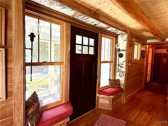Grand water views from this historic home in the center of Wanakena, an Adirondack wilderness location with municipal water, sewage and high speed Internet. School and Healthcare nearby. Magnificent renovations were done with attention to detail, with wonderful spaces and thoughtful additions everywhere. Steps to a sand beach, and access to Cranberry Lake (160 miles of shoreline, mostly state forever-wilderness) Beautiful hardwood flooring, magnificent use of wood and birchbark. The Luxury Sauna is next to a beautiful main floor full bath. Primary (4th) bedroom with full bath (2nd full bath in home) Renovation of that (2nd) bathroom is the only project left for the new owner; work on that room has only started. Furnishings available for separate purchase; expectation of seller is that house will be sold furnished, valued at $50,000 (a fraction of replacement cost). Endless Adirondack hiking/water opportunities. Golf course is conveniently located in nearby Star Lake. Steps from trails into the 5 Ponds Wilderness Area. Much to love about the robust community of Wanakena, location of the oldest continuously operated Ranger School, since 1912.