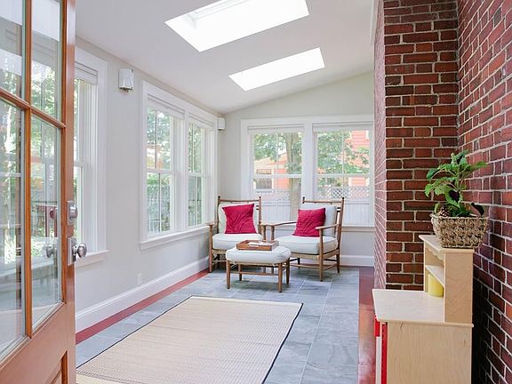 A beautiful, classic brick-end Colonial Revival home, with 5 bedrooms, 3.5 baths, 2 off-street parking spaces, a private garden, and bluestone patio, this comfortable, meticulously updated house is close to Harvard Square, shops, and restaurants. The kitchen includes a delightful eat-in space, with a family room and mudroom adjacent, while the elegant living room with fireplace opens onto a light-filled sunroom overlooking the landscaped yard. On the second floor, a master suite is privately situated at one end, and two more bedrooms share a full bath and hallway. The third floor features a fourth bedroom, a full bath, and a handsome home office that could serve as a fifth bedroom. The hydro-air heating and cooling systems are by Buderus and Unico, and there is 200-amp electrical service. A bonus lower-level extra room abuts the laundry area. Top public and private primary schools are in the neighborhood. Free-standing house is part of a 3-unit condominium association.