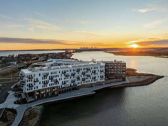 - Exterior features: Adjacent to Gibson Park, Backlit Vanity Mirrors, Balcony, Bicycle storage, Co-Working Hub & Private Offices, Corner Unit, Courtyard, Curated Art Program, Direct on the Water Access & Boardawalk, Fire Pit, Garden, Indoor & Outdoor Bar, Living roof, Nest Thermostats, On-Site Award Winning Restaurant, Package Receiving, Pet Washing Station, Quartz Countertops, Refresh Bar, Stainless Steel Appliances, TV Lounge, Tiled Backsplashes, View Type: Channel Ocean View, View Type: Marsh Ocean View, View Type: Nahant Ocean View, View Type: Oasis Lobby with Sweeping Views, View Type: Select Homes with Ocean & Boston Skyline Views, Wellness Room, Work-From-Home Nooks in Select Homes