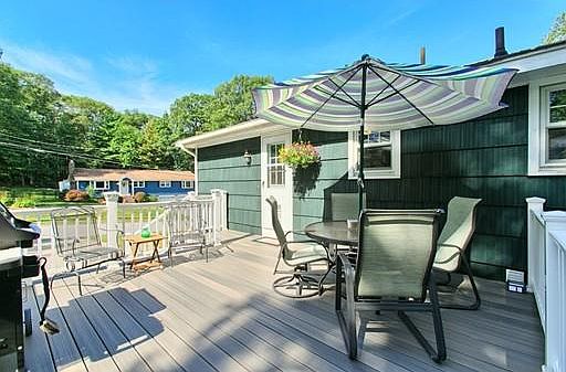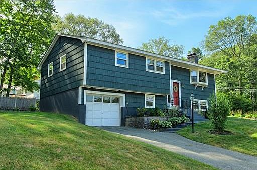 Beautiful 3+ bedroom Split Entry on a gorgeous landscaped corner lot in a great Burlington location. Exterior features include a large (16'x16') maintenance free composite deck with built-in lighting for your summer enjoyment, a huge (16'x20') drive-in shed with electricity and attic storage (perfect for housing rider mower, motorcycle, RV and/or boat), and a fire pit for cool nights outside. Interior features include open concept living/dining room with wood burning fireplace, kitchen with pantry, spacious master bedroom (comfortably fits king size bed), 2 additional bedrooms (1 currently used as an office) and bath. Hardwood throughout main level. Large multi-purpose family room with laminate flooring and recessed lighting, possible 4th bedroom, and laundry room in lower level. Central air. One car garage. Can't beat this location! Less than 3 miles to Routes 128 and 3, Burlington Mall, Lahey Clinic, restaurants and stores galore, movie theaters, and new Wegman's supermarket