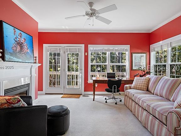 A villa that feels and lives like a home, this end-unit Golfmaster II is spread across 2,000 sq.ft. and features not only three bedrooms, but an additional Carolina-esque flex space with a fireplace and nearly wall-to-wall windows, all on ONE FLOOR that is both easy on the knees while allowing class-leading bedroom and floor plan separation. This lovingly-maintained villa has only been conveyed twice, and was originally the developer's model unit for the Golfmaster II community. Built and delivered in the early aughts, Golfmaster II is one of the newest complexes on Hilton Head Island, and is one of the closest you will find to modern code compliance in the current villa market. With an abundance of windows and natural light, you and your guests will enjoy the semi-private views of the lagoon and wooded buffer which is populated by dense stands of mature oak and pine. This villa features newer mechanicals and appliances, a back balcony, a large enclosed storage space (located on the ground level beneath the stairs and adjacent to the service yard), crown molding throughout, tile backsplash in the kitchen, a cavernous primary suite with a spa tub and separate shower, wood cabinets with dovetailed drawers, and top-quality furnishings from Stanley Furnishing's South Beach Collection. Golfmaster II features a well-maintained gated community pool with bathroom facilities, tennis/pickleball and basketball courts, a seasonal Shipyard Shuttle stop providing you and your guests with hassle-free commutes to the Shipyard Beach Club, three golf courses via the Shipyard Golf Club, and all located within convenient proximity to Pope Avenue, Coligny Plaza, and Hilton Head Islands best amenities and attractions. Short-term rentals are allowed in Golfmaster II, and while the current owners have elected to use this villa purely as a second-home, future renters will undoubtedly appreciate the unique advantages this villa brings to their vacation experience.