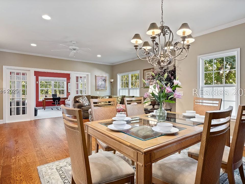 Gated community poolTop-quality furnishingsBack balconyCarolina-esque flex spaceOne floorCavernous primary suiteWall-to-wall windows