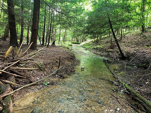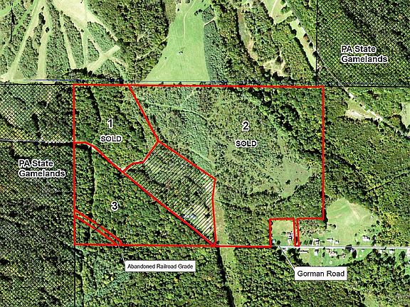 Wooded acreage (17.098 Gross, 16.416 Net) Acres bordering PA State Gamelands. Nice stream through the middle of the property. Parcel 3 on map. Newly surveyed with boundaries blazed and painted. Great place to build a home, camp, or use as a recreational/hunting property. Large trees (oak, maple, black cherry, beech, hemlock, etc.) with significant timber value (timber estimate available). Township road frontage with electric on the property. Additional 1.22 acres of abandoned railroad grade not counted in acreage. Lots of wildlife. Gas and oil rights reserved. Call or text 814-762-4519