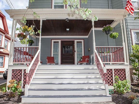 Curb Appeal with a porch and a driveway with a detached garage, either way, you have arrived Home to this BEAUTIFUL Old Style warm and inviting home on a CORNER LOT where the updated kitchen with granite counters,apron sink & stainless steel appliances meet the old style charm with detailed woodwork, high ceilings, large Stained Glass window where this all creates the perfect place to call HOME!.The Impressive wood floor in the foyer along with the breathtaking character of all the woodwork is such an awesome yet welcoming entrance. 6 great sized bedrooms, 2 full baths, closets ! & excess storage everywhere you turn, well what's not to love.Then, whether a man cave or a place for kids to hang out, there's the finished area in basement with 1/2 bath, making additional space to use. Don't forget the fenced in yard and patio area, it's a great way to start or end the day. 3 T-Stops close by.
