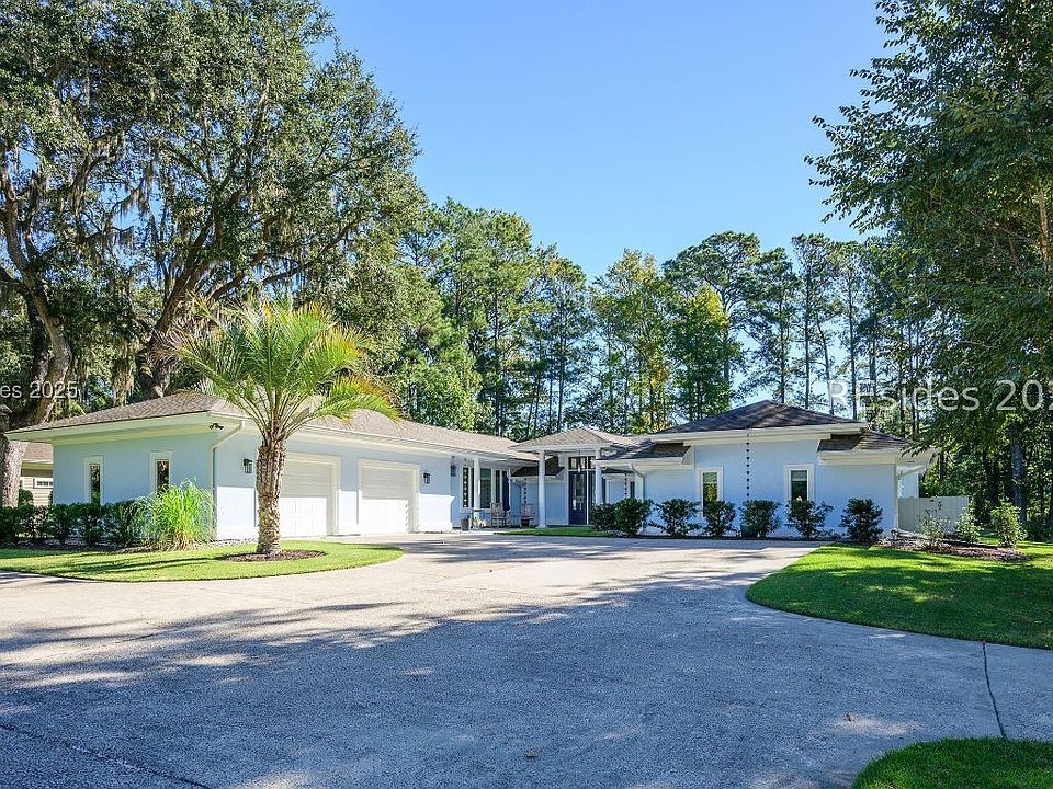 Experience refined Lowcountry living in this exquisitely renovated 4-bedroom, 3.5-bath luxury ranch in Rose Hill, offering over 3,300 square feet of single-level elegance. Perfectly positioned with panoramic views of the Lagoon, 8th tee box, and 4th green of the Rose Hill Golf Course, this home combines timeless sophistication with modern comfort. At its heart is a chef's dream kitchen, fully reimagined with an extended center island, premium quartz countertops, professional-grade gas appliances, and custom exhaust ventilation. Tray and cathedral ceilings throughout enhance the expansive feel, while luxury vinyl plank flooring runs seamlessly from room to room. The private primary suite and expanded in-law ensuite offer retreat-like privacy, while two additional guest rooms share a beautifully updated bath. The spacious lanai and sunroom provide serene outdoor living, ideal for entertaining or relaxing in style. A dedicated TV and game room with a full-size pool table adds to the home's entertainment appeal. With a new roof, dual HVAC systems, ductwork, plumbing, windows, doors, and sliders, this is truly turnkey living. Enjoy Rose Hill's resort-style amenities including golf, tennis, equestrian trails, and a short drive to Hilton Head, Savannah, and Charleston.