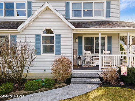 Located in the desirable Village of Altamont, this charming colonial is situated on a beautifully landscaped corner lot. A wrap around front porch brings you inside to a meticulously updated interior. From the modern kitchen to the new HVAC system, this home is move in ready! Living rm w/ HW floors & gas fireplace. Versatile 18'x12' den could be home office or formal dining rm. Unwind in the spacious family rm with vaulted wood ceilings & cozy pellet stove. The finished basement offers even more space & flexibility. Out back, is an entertainer's paradise! Picture yourself entertaining friends & family on the deck, by the heated in-ground pool, or relaxing in the hot tub under the pergola—all enclosed by new vinyl privacy fencing. Don't miss out on this perfect blend of comfort and luxury!