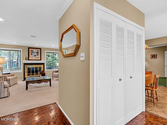 Welcome to Shadow Lake Village. This large Villa 100M ranch model offers 2 bedrooms, 2 bathrooms, 1 car garage and an extra flexible use room with large closet (legally converted). The eat-in kitchen updates include white cabinetry, tile backsplash and tile floor. The living room with wood burning fireplace opens to the dining room with sliders to a large private patio. Spacious primary bedroom features a walk-in closet and updated en suite bath with walk-in shower. The gated community with 24 hour security features a 9-hole golf course. Amenities include a club house with pool, tennis courts, walking trails and lake kayaking. Red Bank offers easy train access to NYC and a variety of restaurants/shops. Short drive to beach and Gateway National Park.