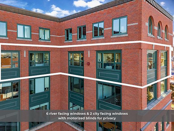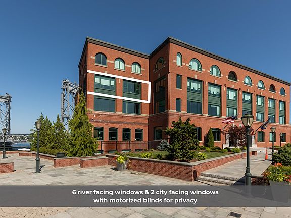 Incredibly rare 3200+ square foot waterfront residence with panoramic views of the Piscataqua River and downtown Portsmouth. This iconic luxury building located in the heart of downtown boasts incredible views, secure underground parking for 3 cars, elevator access, & an impressive rooftop terrace with 360-degree views. Immerse yourself in the maintenance-free, city-living lifestyle where you can walk to award-winning restaurants, coffee & retail shops, and music, art & entertainment attractions! Located on the 4th floor, this bright and sunny unit includes 3 bedrooms, 4 bathrooms, 2 private office spaces, and open concept kitchen/living/dining, each with magnificent views throughout. The combination of the impressive 10-foot wide windows and 9 ft high ceilings creates a warm & airy feel that is rare for any building in Portsmouth! The primary suite features incredible river views, dual walk-in closets, & a spacious private bathroom with soaking tub, 2 separate vanities, & oversized custom tile shower. Thoughtful details can be found throughout this impressive home, including motorized shades for privacy, custom millwork & cabinetry, 9' ceilings, hardwood flooring, and impeccable tile work. Monthly fee includes landscaping, plowing, parking, 2 private storage units, & building maintenance. All of this in an incredible location, next to Prescott Park, the Seacoast Rep Theatre & the Bow St "Decks"!