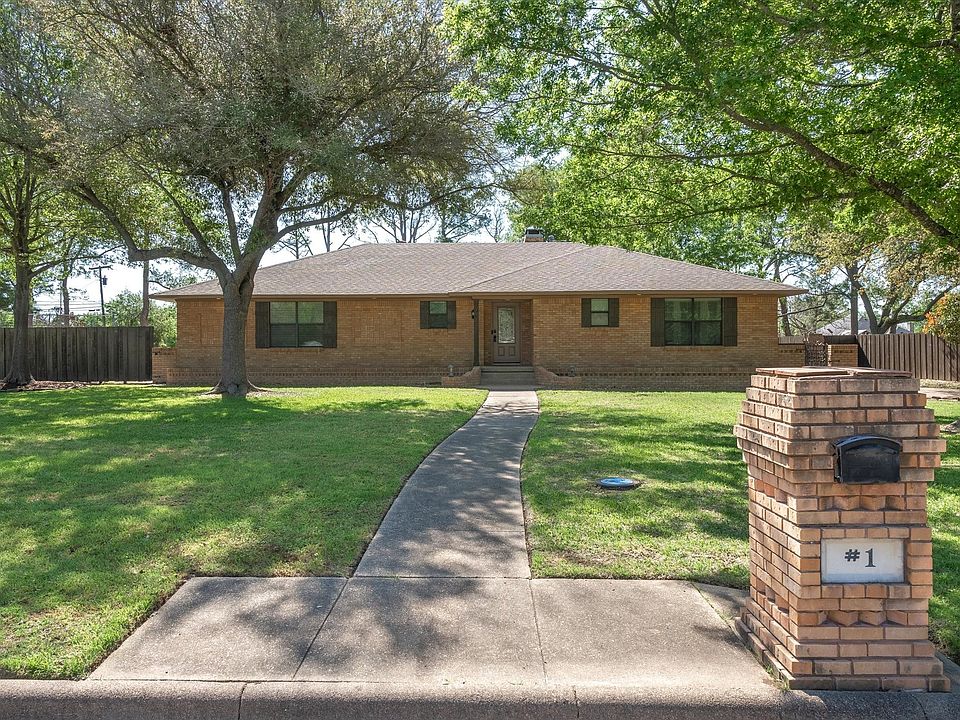 Coveted Griffith Ave properties are rarely available. ACRE corner lots, NEVER! Turn key and well loved with an automatic gate leading to your backyard paradise. The 38x28 patio equipped with lighting, fans and concrete flooring over looks your private tennis courts. A log cabin style 11x17 golf cart garage has side rollup door, ramp & separate 20x12 shed for gardening equipment both with loft storage. The backyard wooden fence offers ample privacy & has a fresh coat of paint! The interior boasts tasteful updates and paint, large open rooms for entertaining, two master suites 14x14 with large walk in closets 9x7, and a large secondary bedroom. The fourth bedroom or office is 11x7 and located at the front foyer along with a full bath for guests. Ample closet space! The oversized dining room houses a 7 ft table AND a second sitting room with two sets of French doors to the expansive backyard. Gas tankless water heater and a roof that is under 2 years old. A truly unique Terrell gem.