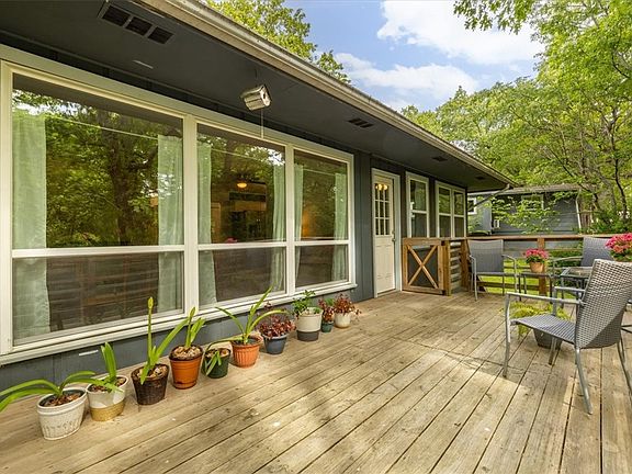 Welcome home to this charming Bella Vista retreat, perfectly positioned just around the corner from the popular Back 40 and Flo Ride trails! Beautifully remodeled in 2016 and completely move-in ready, this cozy 2-bedroom, 2-bathroom home features an inviting open-concept layout. Enjoy cooking in the spacious kitchen with granite countertops, which flows effortlessly into the bright sunroom—complete with its own separate heat and AC unit for year-round comfort. Relax in the generously sized living room, showcasing the original rock fireplace (usable with insert only), offering both character and warmth. Step outside onto your newly replaced 10x20 deck, perfect for entertaining or peaceful mornings overlooking your private backyard. The primary suite provides a serene retreat, featuring a roomy walk-in closet and ensuite bath with a walk-in shower. Additional perks include a convenient 10x12 workshop area beneath the home, complete with brand-new wooden doors, plus an 8x10 shed for extra storage.