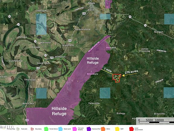 DEAL!!! 279.74 surveyed acres located just outside of the Mississippi Delta in the hills approximately one mile from Hillside Refuge, which is known for consistently producing trophy deer. This property is also conveniently located only about one hour from Madison. The property consists of rolling hills, large food plots, multiple creeks, mature mixed timber and six year old cut over. There is a great road system established that will get you throughout most of the property. Multiple camp sites exist with power and water available. This property is laid out perfectly for deer, turkey, rabbit, squirrel and other small game. This is a turnkey deal; all stands are in place and the food plots are planted ready for the 2023-2024 hunting season. If you're looking for more land to hunt that is exceptional for deer and duck, Hillside Refuge is just right down the road and Morgan Brake Refuse is approximately 8 miles from the property. Turknkey properties like this at this price range sell extremely quickly on the open market. Call today before it's too late.