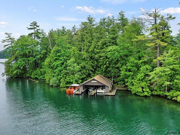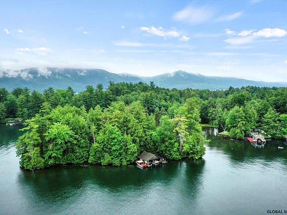 .8 acre level island close to mainland access on Homer Point! Boasting an astounding 779' of lakefront with covered boathouse & 8BR, 4BA duplex.This package includes 2 properties- Hiawatha Island & a .12 acre Homer Point property for parking 5 cars with a stake dock on 53' of shore. There is a 2 story log duplex w/ 8 bedrooms, 2 fireplaces, 2 kitchens and 2 living/dining areas. East side of duplex was updated and used in the winter starting in the 1970's. An enclosed 2 slip boathouse & 2 more stake docks outline the island. An artist a-frame studio is tucked away on the south end. This is a sheltered island with breathtaking views of The Sagamore & the Narrows. YOUR ONE OF A KIND EXPERIENCE AWAITS