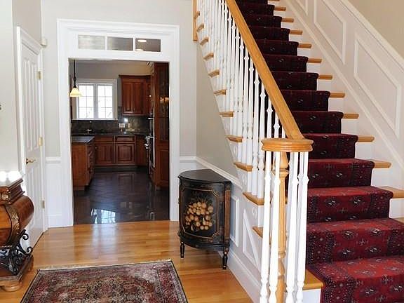Now priced below recently appraised value, this home is just the right blend for comfortable living and formal entertaining. Well maintained brick-front Federal colonial with beautiful features throughout - transom and Palladian windows, wainscoting, dentil and crown moldings, beams, exterior granite window crowns and sills in brick facade. Remarkable cook's kitchen: Viking range and hood, Kitchen Aid wall oven and microwave/oven combination, Sub-Zero refrigerator, and large island. Sophisticated audio features in many rooms. Two offices. Two staircases. 1st floor office with full bath access and closet ideal for extended guests needing a single floor living arrangement. Use the second master suite with attached bath on the second floor or the entire third floor for au pair or teenage suite needs. The exterior features professional landscaping, peaceful babbling brook, walk-out basement, new deck for entertaining, brick patio, and just the right amount of woodlands for your privacy.