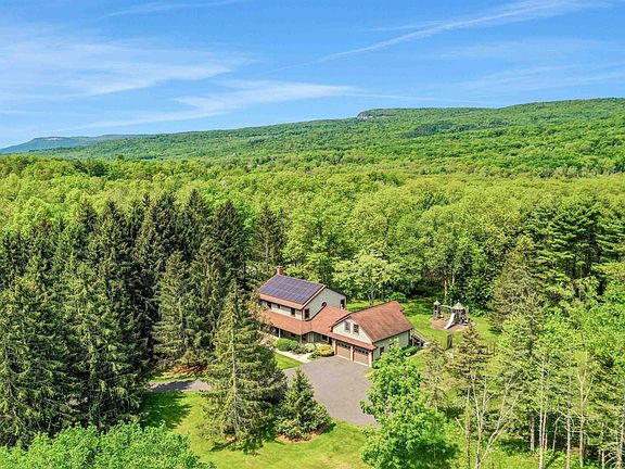 Just minutes from town and biking distance to the rail trail, this 3300 square foot custom home is located in one of New Paltz’s most desirable neighborhoods. Mature Evergreens create privacy and a feeling of seclusion. Designed for entertaining with an open flowing floor plan, this home is light and bright with generous sized rooms. After a long day, come home and unwind in front of the warm fireplace while enjoying the natural beauty beyond the walls of windows. The homeowners’ penchant for a sustainable lifestyle include the owned solar panels which reduce electric bills to as low as $32 monthly, growing food in the fenced raised bed garden with irrigation system, ongoing pollinator meadow project with irrigation system and heat pump for Central A/C. This exquisite home’s amenities include a luxurious master suite featuring a custom master bath walk in shower, 2 shower heads, 4 jets, air tub with chromo therapy; new MinkaAire ceiling fans, large deck and covered back and front porches, walk in California closets, French doors, vaulted Florida room, new windows & custom woodwork and generously sized gourmet kitchen with granite counters, oversized island with prep sink, custom wood cabinets, new appliances and walk in kitchen pantry. The Chef’s kitchen adjoins the spacious breakfast area opening to the private deck and spacious yard. Extensive built in custom bookcases throughout create multiple storage opportunities for the avid reader or collector. If you feel you need to get away, retreat to your separate office/studio space with private entrance. Your new home has it all; open and inviting entertainment spaces and almost 3 acres to enjoy & entertain friends and family. Private, yet convenient country living is yours while enjoying a remarkably beautiful setting close to Mohonk, Minnewaska, & just a mile from the happening village of New Paltz.