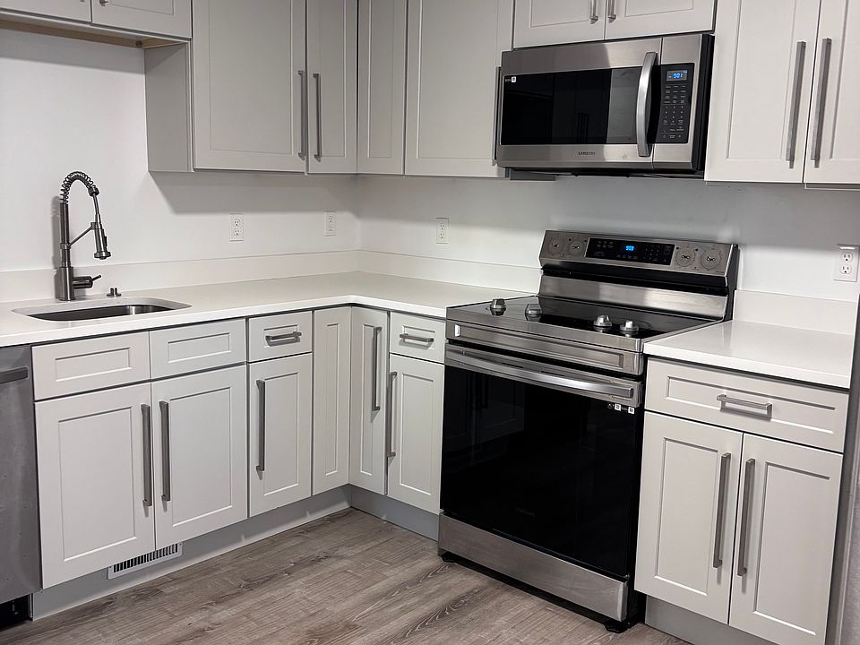 Absolutely stunning completely remodeled 2 bedroom 1 bath unit available now. Open concept living/kitchen area features living room and laminate floors. Newer appliances including washer dryer in unit! 2 Nice size bedrooms. Private entrance, off street parking, small, quiet, well maintained 4 unit building. Great commuting location, convenient to Mass Pike, 146, Rte 20, TUFTS, UMASS, shopping and restaurants. Good credit (Credit check and references required), no smoking, pets negatable. Pets negotiable, no smoking, good credit, background check required