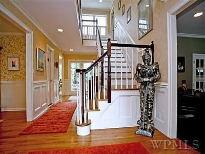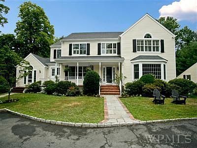 In-town colonial; close to town and train. .93 acre of level property with pond and waterfall. Separate office or guest suite with living area/ bedroom and full bath. Large new eat-in kitchen with sitting island opens to breakfast area and walks out to mahogany deck. Basketball court.