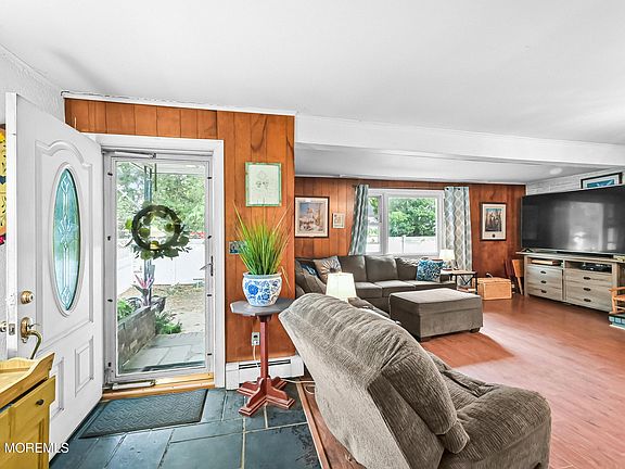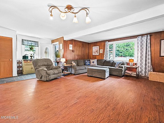 Welcome to 1 Hobart Street — Peacefully tucked away in a quiet corner of Keyport, where timeless charm meets everyday comfort. Inside, a warm living room with wood accents and a brick fireplace flows into a bright dining area and renovated kitchen featuring white shaker cabinets, quartz counters, a farmhouse sink, stainless-steel appliances, and breakfast seating. With 5 versatile bedrooms, 2 updated baths, and a finished basement with bar, gym, and entertainment area, this home offers flexibility for any lifestyle. Outside, enjoy a fully fenced yard with a multi-tier deck surrounded by mature trees, perfect for relaxing or entertaining. All minutes from Keyport's waterfront, restaurants, and shops