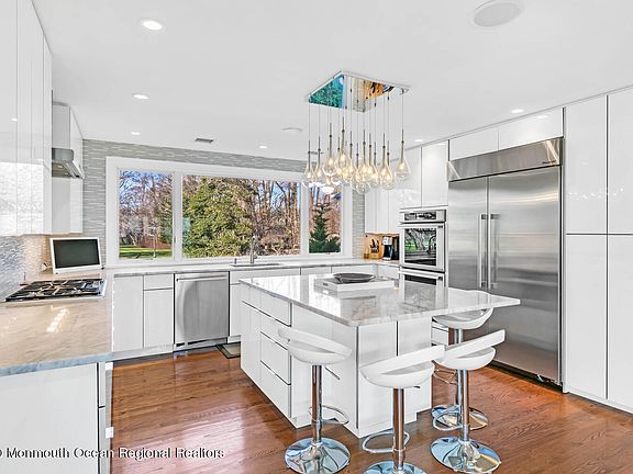 PRIVATE WATERFRONT PARADISE! NOW AVAILABLE FOR A SHORT TERM LEASE - Sweeping views from nearly every room at executive-style rental in an ultra-private location. Beautifully remodeled from top to bottom offering high end finishes & a sun-drenched open layout w/ oversized windows & hardwood flooring throughout. Gorgeous eat-in kitchen w/ oversized island, professional grade appliances & breakfast area overlooking private grounds & the SHREWSBURY RIVER! Impressive great room w/ vaulted ceiling offers easy access to grounds & patio. Flexible layout with two master suites (first and second floor), large bedrooms, fantastic closet space & stunning baths w/ designer selections. MINUTES TO NY FERRY, BIKE TO THE BEACH! Full credit report & lease app are required.