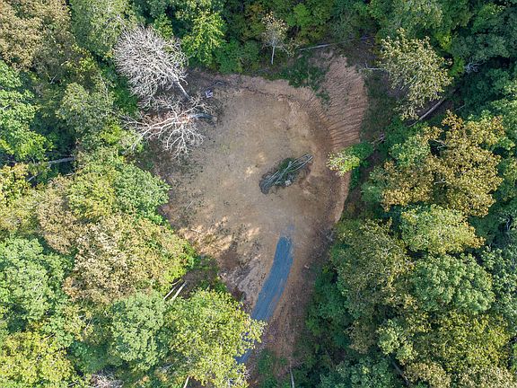 Access begins with a 16x60 ft engineered bridge, certified for heavy loads, that spans the main spring-fed creek. From there, a private drive leads directly to the build site. The drive doubles as a dam, with a piping system that diverts mountain springs and safeguards the land.