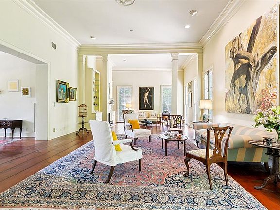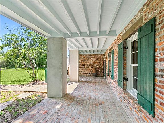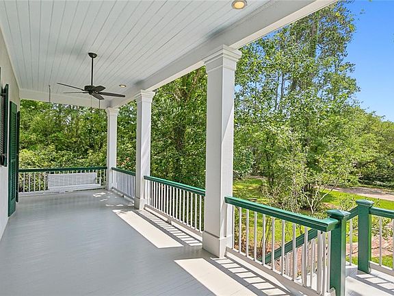 Rare opportunity to become the owner of an architectural masterpiece by renowned A. HAYS TOWN! Magnificent 3 bedroom, 3.5 bath home & 1 bedroom guest cottage nestled in privacy on cul de sac in town limits of Covington, near St. Tammany Hospital. Lush 1.14 acre corner lot. Featuring some of the finest elements of Louisiana's architectural past. Timeless appeal. Iconic exterior staircase. Cypress French doors (Exterior doors custom built). Spacious front & lower galleries. Extensive use of beautiful old materials. Stunning 100+ year old 14" wide plank heart pine floors. Early Louisiana recessed panel interior doors. Two masonry fireplaces, 1760's Va. mantels. Custom cypress cabinetry. Elegant custom staircase. Foyer opens to breathtaking grand room (parlor, living & dining) featuring dramatic 14.5' ceiling, soaring columns, fine triple crown molding, fireplace, floor to ceiling double hung windows & French doors leading to back balcony. Spacious gourmet kitchen with plentiful custom cypress cabinetry (in-set doors), copper vent hood, large island, old brick floors, & beam ceiling is open to the light-filled breakfast alcove with floor to ceiling windows & a view of the rose garden. Luxurious primary bedroom suite located on upper/main level has sitting room/library with fireplace, beam ceiling, & custom cornice. Lower level has two spacious secondary bedrooms, 2 full baths, & large den; offset white painted brick arches lead to a large utility room with space for a small kitchen. Brick guest cottage with large front porch, carport & approx. 878 Sq. Ft. ALA. House & Guest cottage roofs replaced in 2022. House has an open 2-car garage with old La. brick walls & floors. All baths original & will need updating. Central Vacuum. Security System. Near all that the charming historic town of Covington has to offer. Commuting distance New Orleans. An extraordinary property!