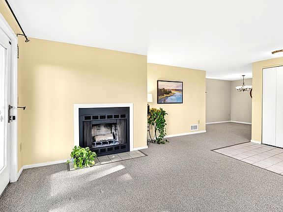 Bright and airy end-unit in beautiful Fox Meadows! Move right into this pristine ranch that's been updated throughout and start enjoying one-floor living! Curl up by the fireplace with a good book or host a dinner party in the dining room as this condo is both cozy and surprisingly spacious thanks to its open floor plan. The living room is flooded with natural light and has wonderful views all the way to the Arrigoni Bridge spanning the Connecticut River. NEW GAS FURNACE; NEW WATER HEATER being installed next week; AC condenser 2022; remodeled kitchen with new refrigerator, countertops & gleaming white cabinetry - all brightened by southwestern light through a slider that accesses a private patio perfect for morning coffee or evening relaxation after a long day! This unit also shines with newer carpeting & fresh paint throughout and a tastefully remodeled bathroom with new toilet, vanity, light fixture and walk-in shower. In-unit washer & dryer. Peaceful, fresh white bedroom has huge walk-in closet for extra storage! Outside, two on-grade parking spaces near front door make for quick entry. Lots of dog walkers here and summer brings extra fun at the pool and clubhouse next to the playground. This is a professionally-managed, well-kept community sought out for its hill-side perch with views, amenities and fab location for shopping and commuting. Note: NEW KITCHEN SLIDER is on order: this is covered by the HOA & will be installed by the maintenance department.