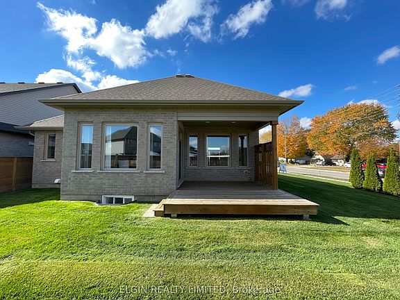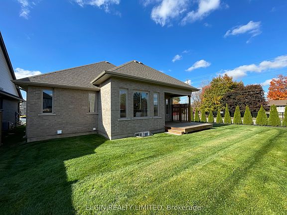 Discover this exceptionally crafted former Hayhoe Model Home bungalow, located in Tillsonburg's desirable Northcrest Estates, offering 4 bedrooms (2+2) and 3 bathrooms, blending luxury with functionality. The open-concept main floor features a welcoming foyer with soaring 9-foot main floor ceilings, hardwood and ceramic tile flooring, and a designer kitchen, complete with quartz countertops, a stylish backsplash, a large island, and a walk-in pantry, seamlessly flowing into the dining area and great room with a cozy gas fireplace. The luxurious primary suite boasts a walk-in closet and a spa-like ensuite with a soaker tub and custom shower. The finished basement adds valuable living space, featuring a spacious family room, two additional bedrooms, and bathroom. Enjoy premium outdoor living with a partially covered rear deck, BBQ gas line, lawn sprinkler system, professionally landscaped front yard, and double concrete driveway. Additional features include a double-car garage, convenient main floor laundry with bench seat and garage access, Tarion New Home Warranty, and numerous upgrades throughout. This home is ideally located close to shopping, dining, schools, parks, and trails, with easy access to Hwy 401. Please Note: The sales office in the garage will be converted back to a standard garage.