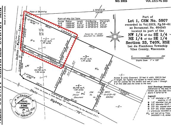 RARE opportunity!! Vacant lots for a large storage shed, storage business, various other businesses, house, multi-family, or camper (with permit & POWTS). Recreation zoning allows for a WIDE range of options (see Vilas County General Zoning Ordinance 85). This listing is for one lot, however there are seven total lots for sale at this site; lots 1,3,5 are 1.77ac each.; lots 2,4,6,7 are 1.6ac each, Three lots (2,4,6) have Hwy 70 visibility for possible business signage (requires application & approval). Gravel easement road with underground power and transformers at the gravel easement road. All lots have been soil tested (see Documents). Road Maintenance Agreement is shared by each lot equally (1/7th each). Seller is a Licensed Real Estate Agent in WI.