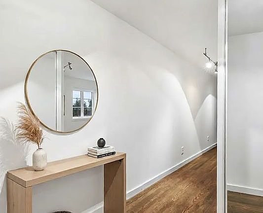 Upon entering this modern apartment, you are greeted with a large entryway and elongated hallway that leads you to the open living space. The large living area features mirrored sliding glass doors separating the living room and bedroom, making the layout feel open and spacious. The open kitchen features high-end appliances, granite countertops, and ample cabinet space. Right off of the kitchen lies a cozy breakfast nook with a built in banquette. The oversized bedroom easily accommodates a king-sized bed plus additional furniture with an abundance of closet space. The bathroom contains a soothing spa-like tub and a glass pedestal sink with quality fixtures. The apartment has climate controlled air conditioning dimmable track lighting, and built-in Sonos speakers throughout.