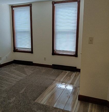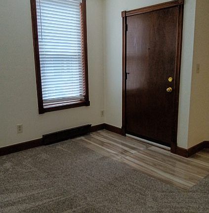 Recently updated apartment, 1st floor: paint, carpet, stove, sink, faucet, window blinds. Easy walk to the Empire Plaza and Washington Park. No smoking of any kind in this apartment or on the property and no pets. Tenant is responsible for all utilities (electric (heat), gas, wireless. No satellite dishes allowed on property). No window AC units, portable AC only.